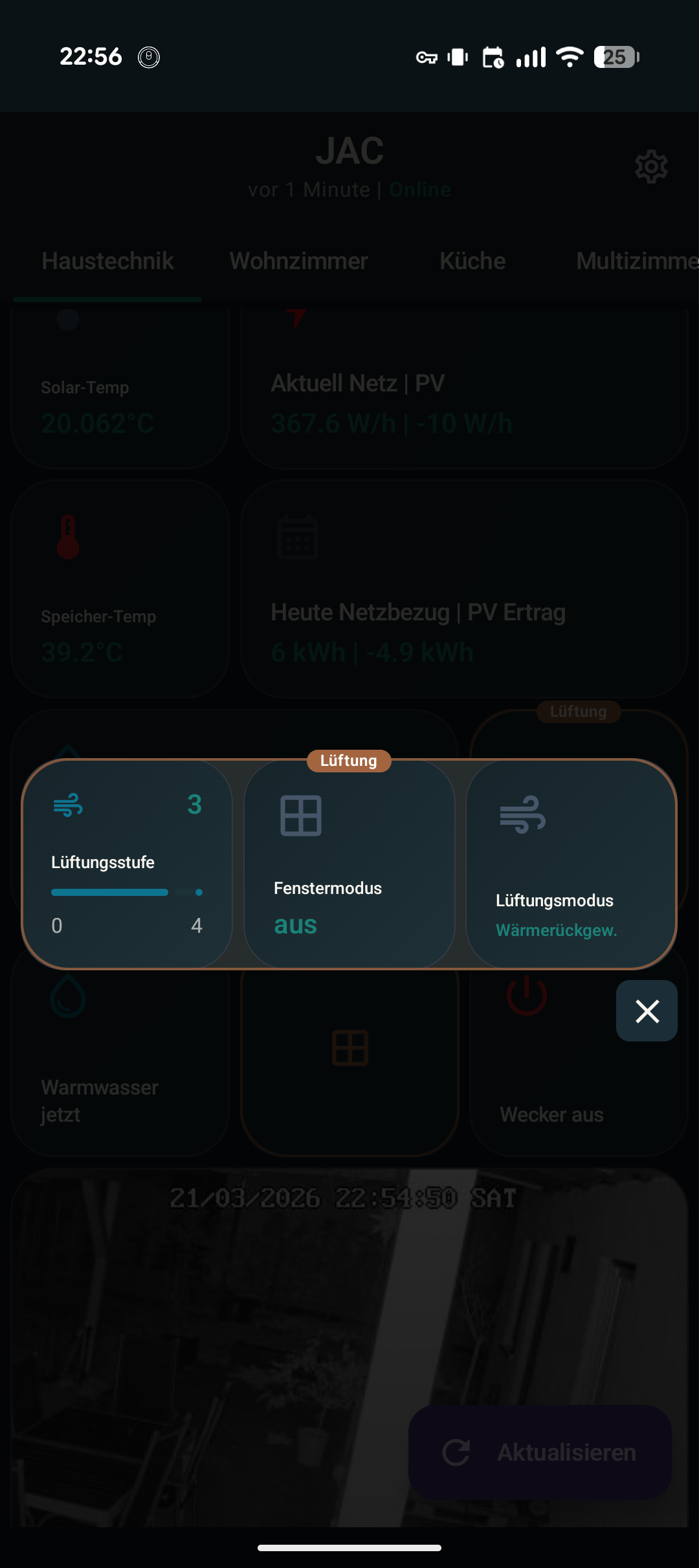 Im Alltag zeigt sich die Stärke vor allem in der Vielfalt der Widgets. Neben klassischen Kacheln mit Icon und Text unterstützt die App auch Bilder, Slider, Auswahl-Dialoge und eine eigene Rollladensteuerung. Werte, Titel, Farben und sogar Icon-Namen können dynamisch aus JSON-Antworten abgeleitet werden. Dadurch entsteht kein statisches Dashboard, sondern eine Oberfläche, die auf Zustände reagieren kann. Eine Lampe kann anders aussehen, wenn sie eingeschaltet ist. Ein Select-Widget kann verfügbare Optionen direkt aus dem Backend laden. Ein Rollladen kann nicht nur Befehle annehmen, sondern auch seine aktuelle Position anzeigen.